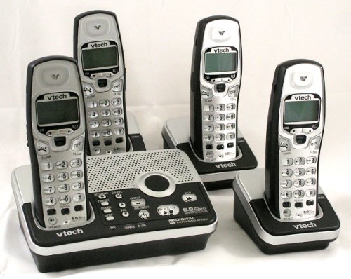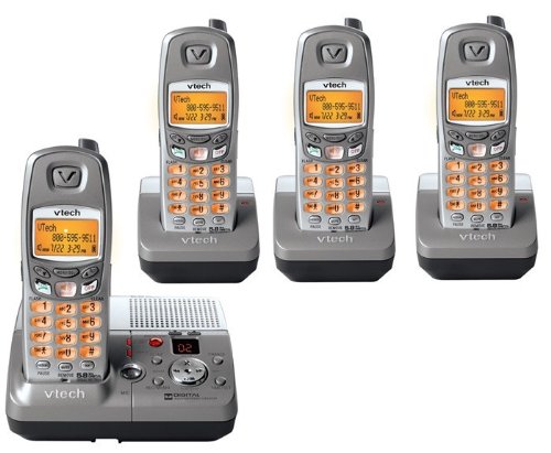 The 5.8 GHz VTech mi6896 four handset system offers a wealth of telephony features: three-mailbox answering system, caller ID, speakerphone, intercom, 50-location phonebook, mute, volume control, page feature, and much more. With 5.8 GHz phone technology, you get ideal performance when it comes to clarity, range, and security. You're also on a much less trafficked area of the bandwidth than either the 2.4 GHz or 900 MHz frequencies.